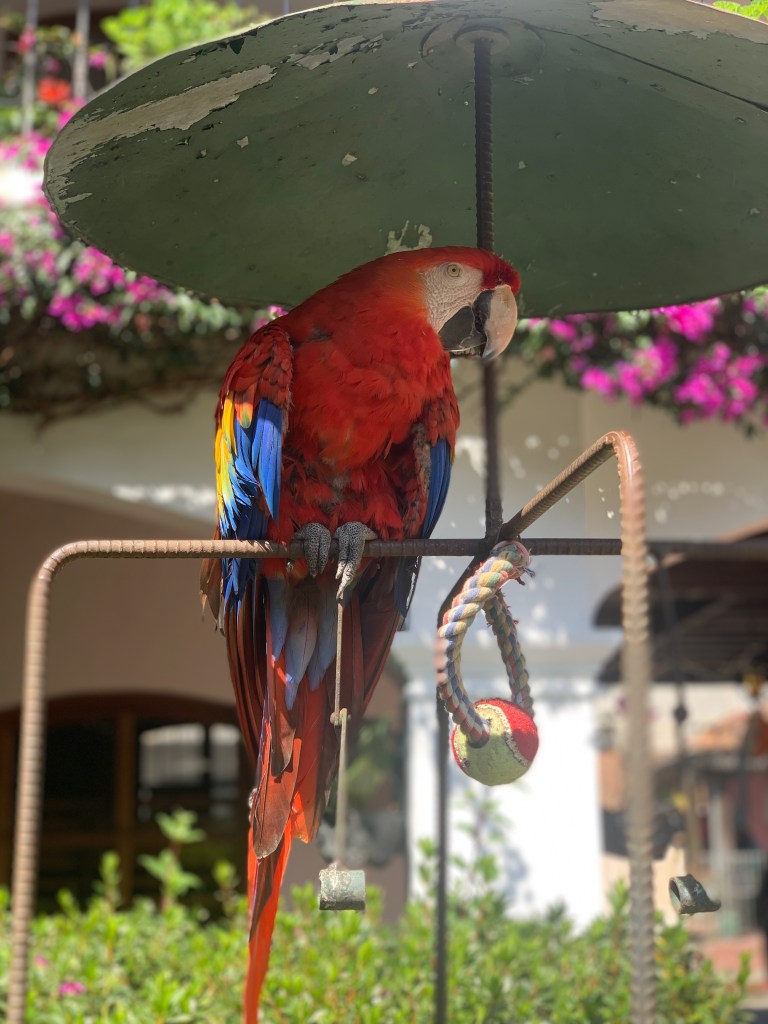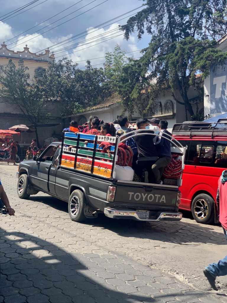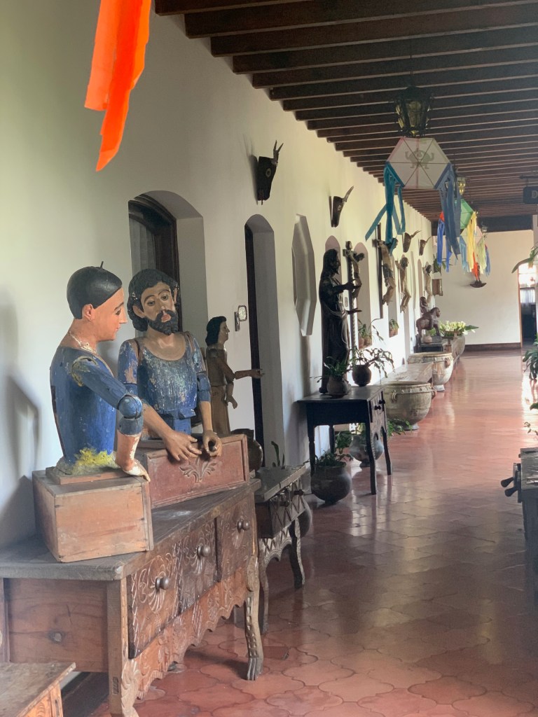 I boarded a water taxi that was hailed by waving to them as they zoomed by from the loading dock of my hotel. My driver picked me up from the Panajachel docks and we drove 2hrs to Chichicastenango but before I entered the market we stopped at a green oasis in the center of town; Hotel Santo Tomas for breakfast. This hotel is so beautiful it deserves a separate post, from the beautiful rooms, exotic garden and talking parrots to the art and food, everything was perfect.